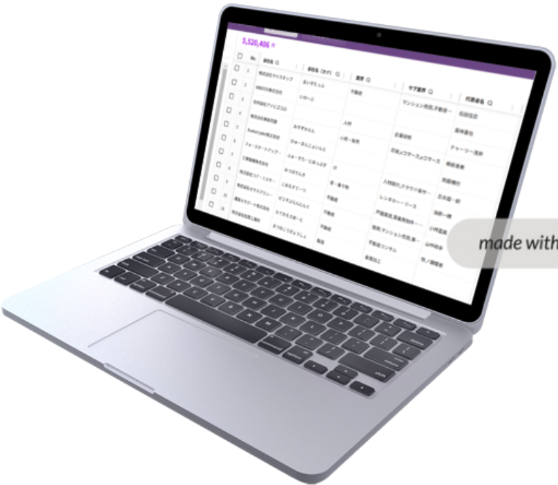 日本国内で550万社を超える企業データベースを活用し、営業活動に必要な情報を一括でリスト化。売上、社員数、電話番号、メールアドレス、問い合わせURLなど、営業の現場で役立つ情報が網羅されています。これにより、効率的なリード発掘とターゲティングが可能です。